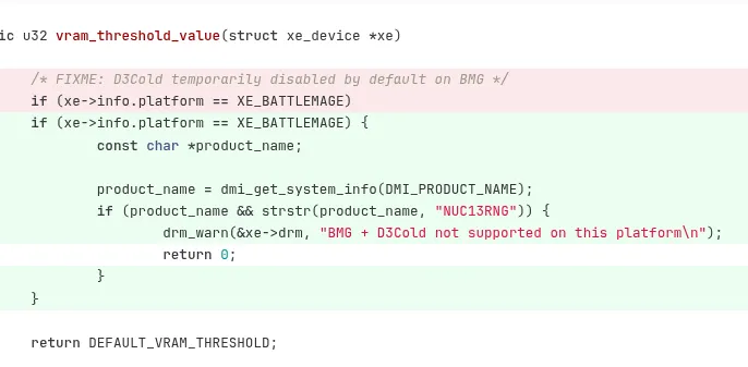 The latest development comes in the form of a new patch set to be merged during the Linux 6.20~7.0 kernel cycle. This patch doesn’t simply re-enable D3cold for all Battlemage GPUs; instead, it takes a more surgical approach. D3cold will now only be disabled on platforms known to have issues—at least for now, that means the NUC13RNG, Intel’s ASUS NUC 13 Extreme Kit.