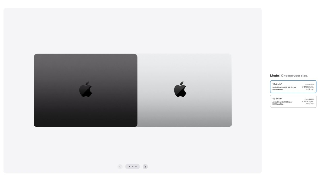 For anyone who’s purchased an iPhone or iPad online from Apple in recent years, the new Mac buying experience will feel immediately familiar. The process now typically begins with selecting your desired model (14-inch MacBook Pro or 16-inch MacBook Pro, for instance), followed by a guided tour through customization options including: