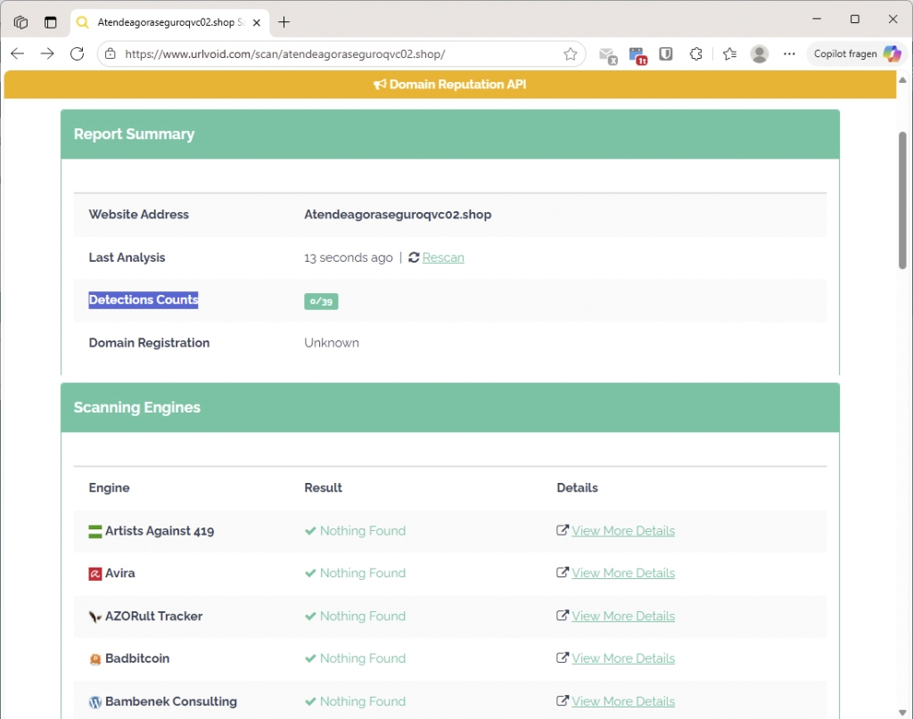 For example, if only two out of 39 services flag a site, it could be a false alarm—or it could be a brand-new phishing page that hasn’t yet been widely reported. Use your judgment and consider the context.