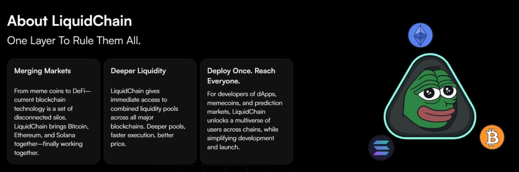 LiquidChain is building a unified execution layer that bridges Bitcoin, Ethereum, and Solana — the three largest blockchain ecosystems — using ZK-rollup technology. The project promises sub-second block times, near-zero gas fees, and the security of underlying Layer-1 and Layer-2 networks. Its architecture is tailored for decentralized finance (DeFi) and gaming applications that require high throughput and low latency.
