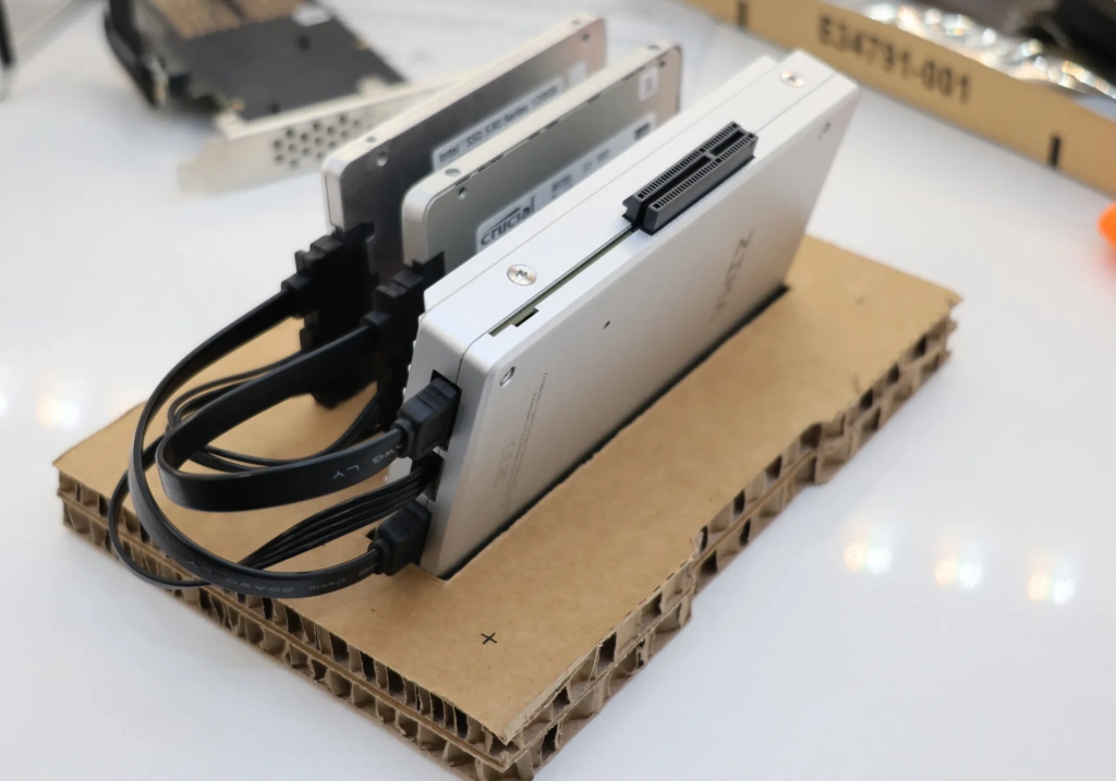 While the PCIe 3.0 connectivity may not be as fast as newer PCIe 4.0 or 5.0 options, it still provides ample bandwidth for most use cases. We did notice that having M.2 NVMe slots directly on the board would have been a convenient addition, but the current setup with SATA ports and the PCIe connector still offers plenty of flexibility for storage expansion.